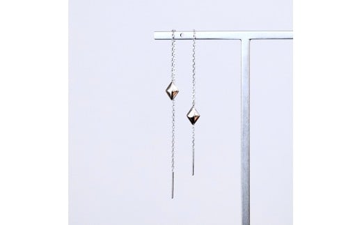 - K18WG(18金) ホワイトゴールド 地金 菱形 チェーン ピアス シンプル 保証書付 KO-0071 242-035-b