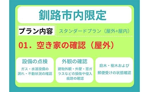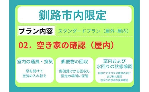 - 空き家見守りスタンダードプラン(屋外・屋内4回)釧路市限定 釧路ガス社員が現地確認&写真報告 空き家 巡回 見守り 北海道 防犯 ふるさと 調査 報告 セキュリティ 点検 安心 安全 F5F-0127