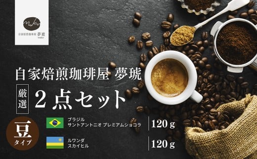府中から世界に発信できる店を【自家焙煎珈琲屋 夢琥】豆2点セット / コーヒー豆 ブラジル ルワンダ 高品質 フレーバー感 後味の甘さ 広島県 No.1021