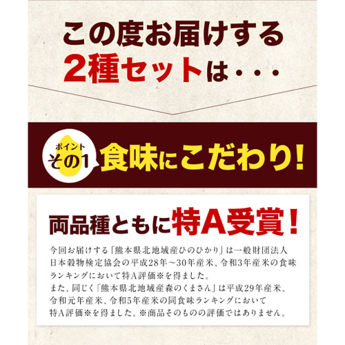 【12ヵ月定期便】米 令和7年産 無洗米 ひのひかり 森のくまさん 2種 食べ比べ 米 計10kg 計20kg 《お申込み翌月から出荷》 ヒノヒカリ お米 こめ 熊本県産 精米 森くま ブランド米 ご飯