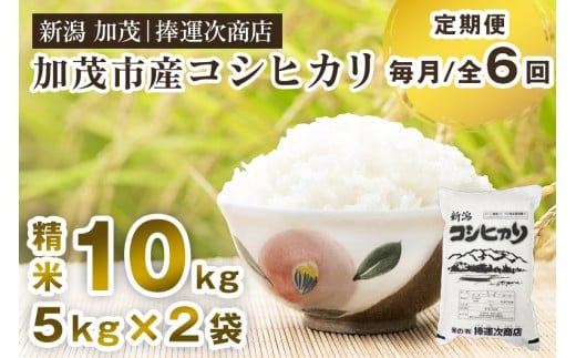 - 【令和7年産】【定期便6ヶ月毎月お届け】加茂市産コシヒカリ 精米 10kg《順次出荷》 こしひかり 新潟米 お米 白米 ライス ご飯 加茂市 捧運次商店