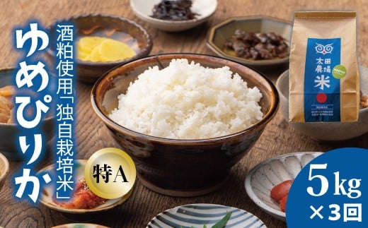 - 【北海道 農家直送! 定期便】太田農場 酒粕独自栽培米特Aゆめぴりか 令和7年産 5kg×3回コース