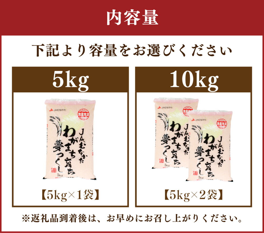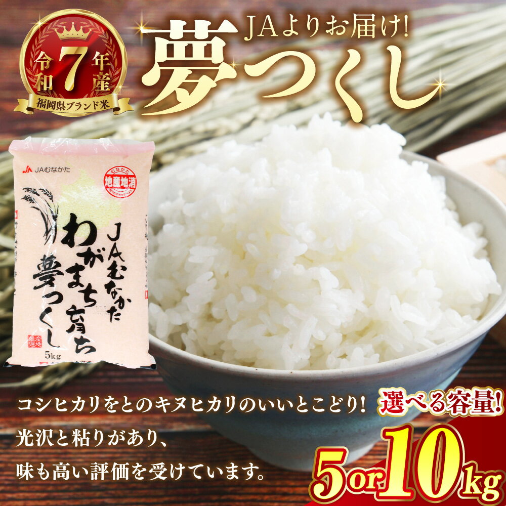 - 【ふるさと納税】<選べる内容量>【令和7年産】JAよりお届け!福岡県ブランド米「夢つくし」5kgまたは10kg お米 こめ コメ ご飯 ごはん 夢つくし 令和7年産 福岡県産 国産 5kg 10kg 精米 ブランド米 福岡県 岡垣町 送料無料
