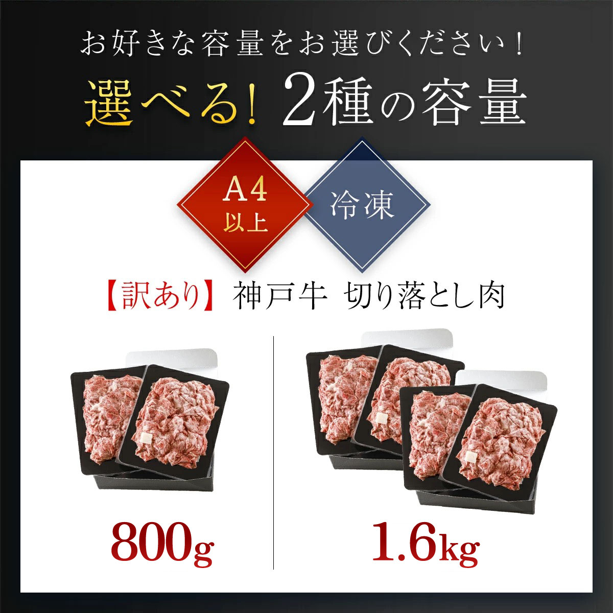 【ふるさと納税】神戸牛 訳あり 切り落とし肉 800g/1.6kg (400g×2パック/4パック)<A4ランク以上!>神戸ビーフ 神戸肉 A5 ランク 切落し 切りおとし 訳アリ 規格外 部位 大きさ 不揃い おまかせ 国産 黒毛和牛 牛 牛肉 肉 お肉 冷凍 兵庫県 朝来市 AS8C17-AS8E7