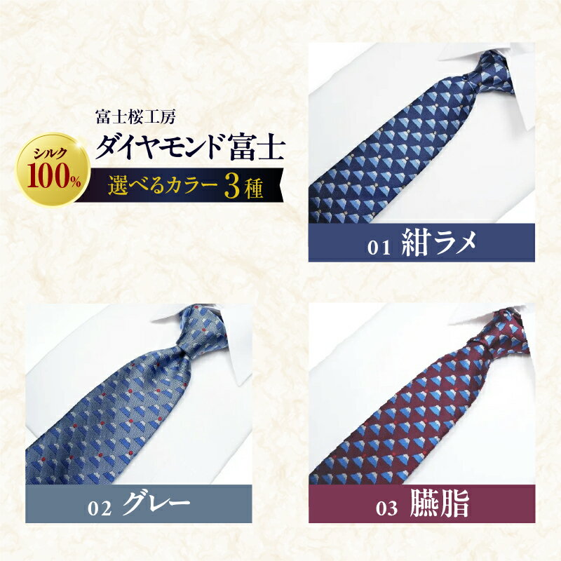 【ふるさと納税】 ネクタイ シルク 日本製 ダイヤモンド富士 富士桜工房 光沢 紺ラメ グレー 臙脂 贈答 ギフト プレゼント ビジネス 冠婚葬祭 国産 送料無料 忍野村 山梨県