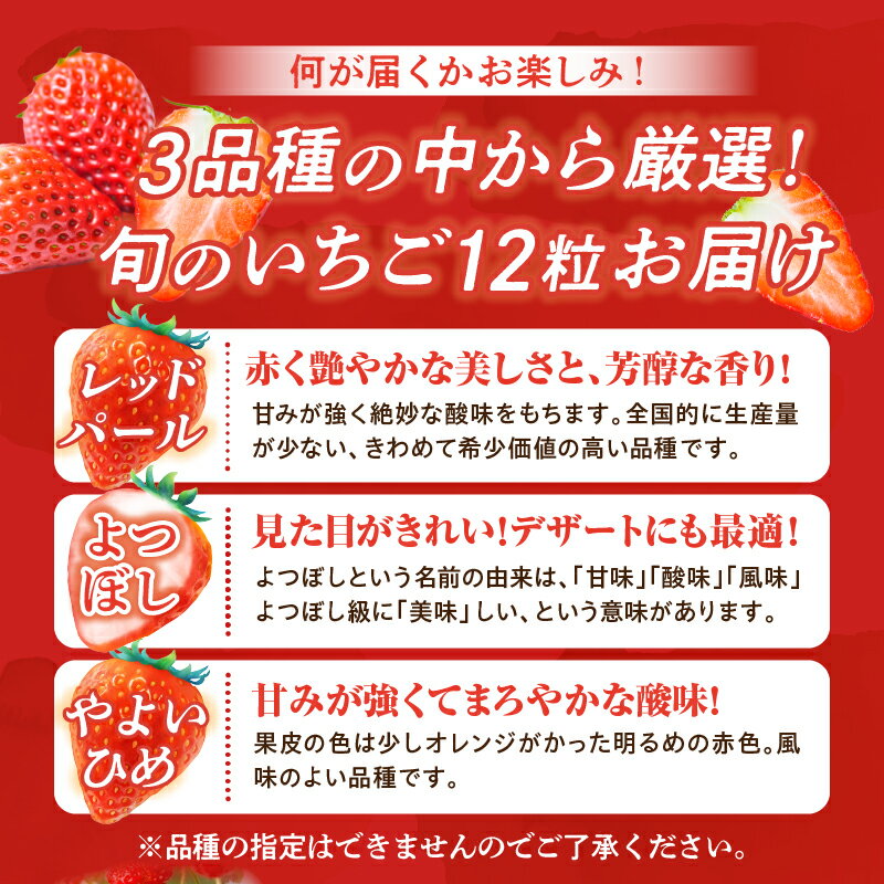 【ふるさと納税】【生産者厳選】新鮮採れたて プレミアムいちご 12粒 レッドパール よつぼし やよいひめ 苺 イチゴ 大粒 フルーツ 産地直送 贈答用 限定 ふるさと 人気 おすすめ 贈答 ギフト お裾分け プレゼント 宮崎県 小林市 送料無料