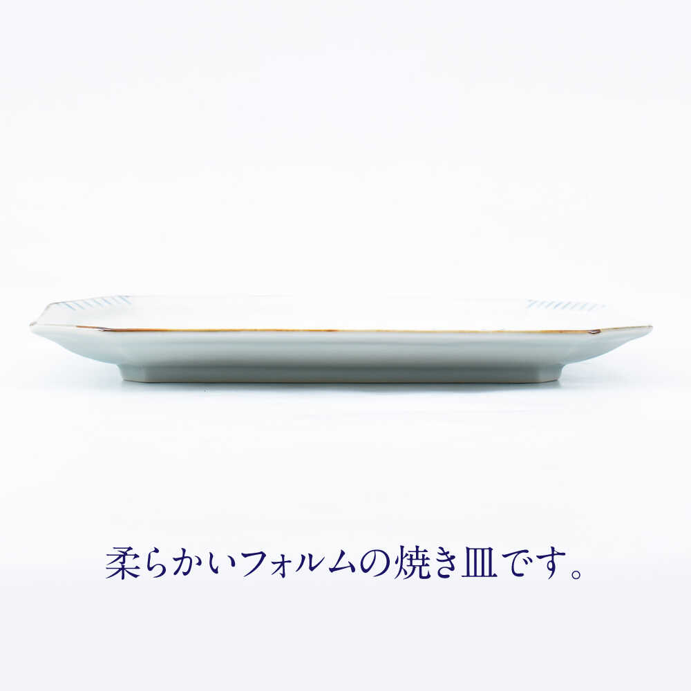 【陶芸作家の手描き染付】有田焼 金彩草花紋 21cm 長角皿 (中) 2枚セット パスタ皿 焼き魚皿【喜鶴製陶】中皿 取り皿 食器 皿 プレート 長皿 A35-282