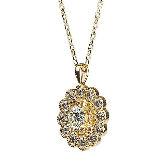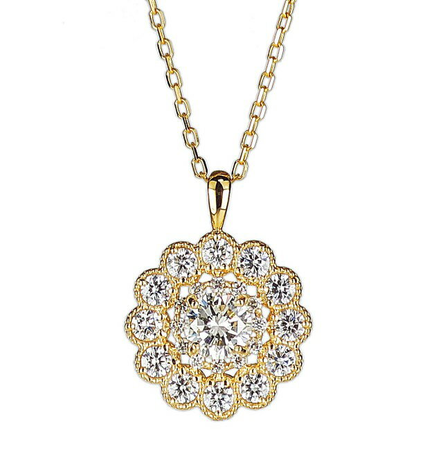 【ふるさと納税】< 甲府ジュエリー > ペンダント ネックレス ジュエリー アクセサリー レディース ダイヤモンド 0.75ctUP 18金 K18 YG イエローゴールド アンティーク風 角小豆チェーン スライド式 ギフト プレゼント ジュエリーケース付 鑑別書付 保証書付 k120-086