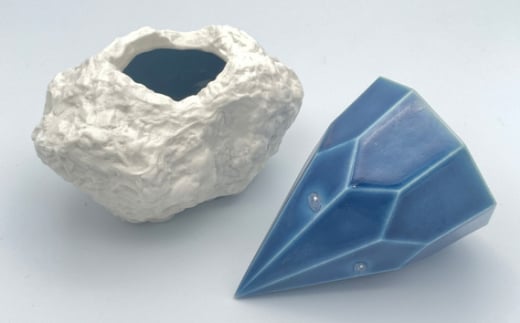 - glaze gem 磁器製 酒器 酒盃台 青 / 伝統工芸 鋳込技法 大阪府 No.210