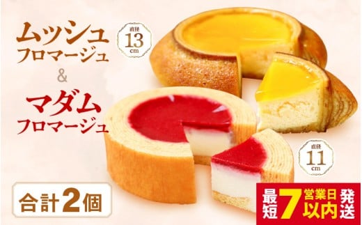 - 【チーズケーキセット】2種のバウムに2種のチーズケーキが入った新感覚スイーツ2個セット ムッシュフロマージュ~ベイクドチーズinハードバウム~ & マダムフロマージュ ~レアチーズinソフトバウム~計2個 【スイーツ お菓子 お土産 おもたせ おやつ デザート 洋菓子 セット ギフト プレゼント】【大人気】 [A-08154]