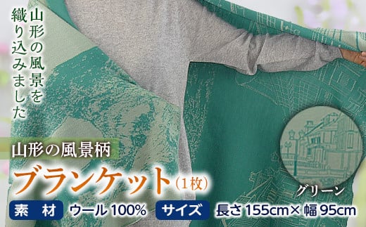 ブランケット 山形の風景柄/グリーン F2Y-2616