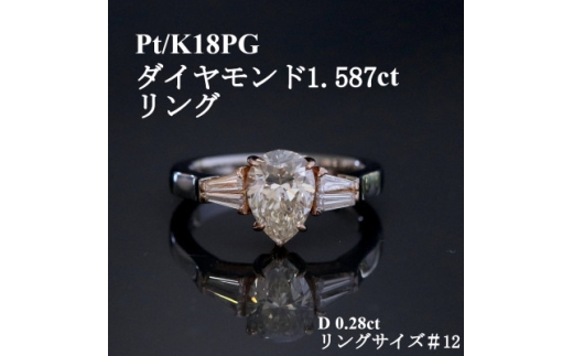 プラチナ/K18PGダイヤモンド<1.587ct D0.28ct>G5657【1665400】