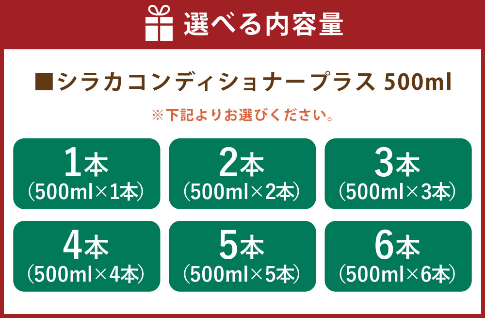 - シラカコンディショナープラス 500ml 1本/2本/3本/4本/5本/6本 コンディショナー お風呂 フロ ふろ 生活用品 日用品 うるおい 【ふるさと納税】<選べる内容量> 送料無料
