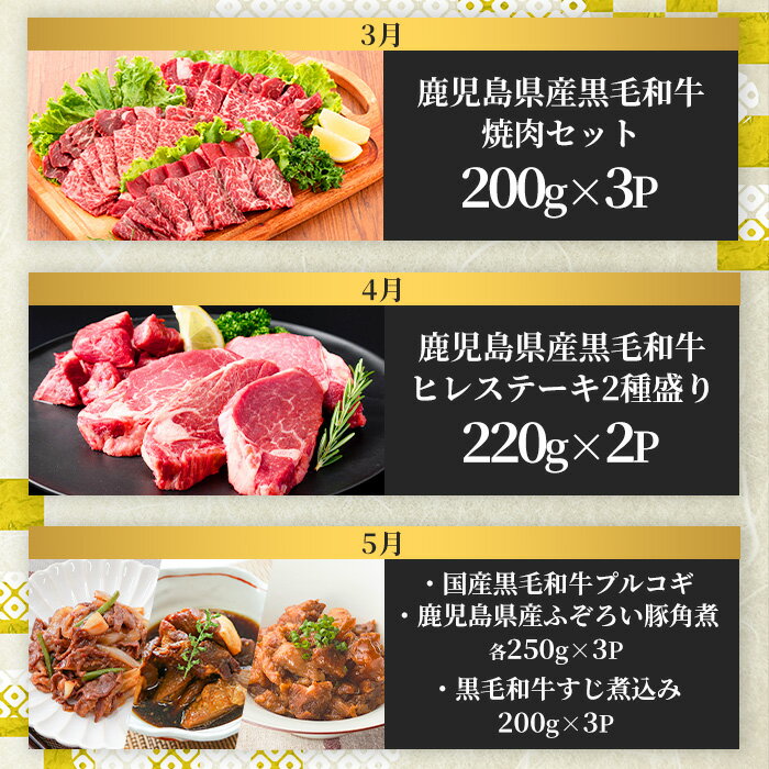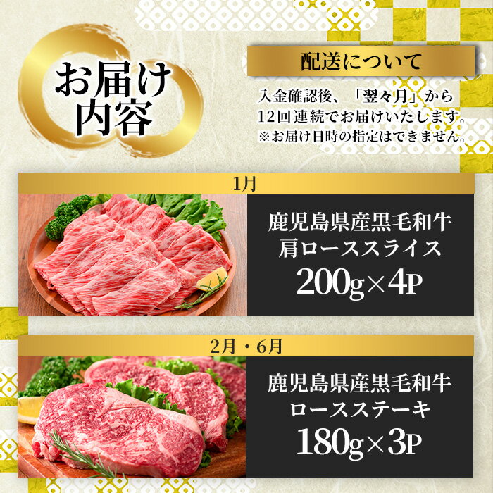 - 【ふるさと納税】<定期便・全12回(連続)>お楽しみ!大人気の返礼品定期便(全12回・ステーキ、ハンバーグ、ローストビーフなど) 牛肉 黒毛和牛 和牛 ステーキ すき焼き しゃぶしゃぶ 焼肉 BBQ 定期便 12ヶ月 12回 頒布会 A5 冷凍 ギフト 贈答 コンシェルジュ【カミチク】
