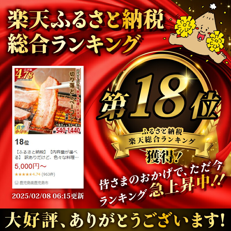 - 【ふるさと納税】【内容量が選べる】 訳ありだけど、色々な料理に大活躍 切り落としベーコン 540g 〜 1440g 訳あり 小分け パック 切り落とし パスタ サラダ スープ お試し 大容量 ボリューム 鹿児島市 贈り物 プレゼント ギフト 5000円 〜