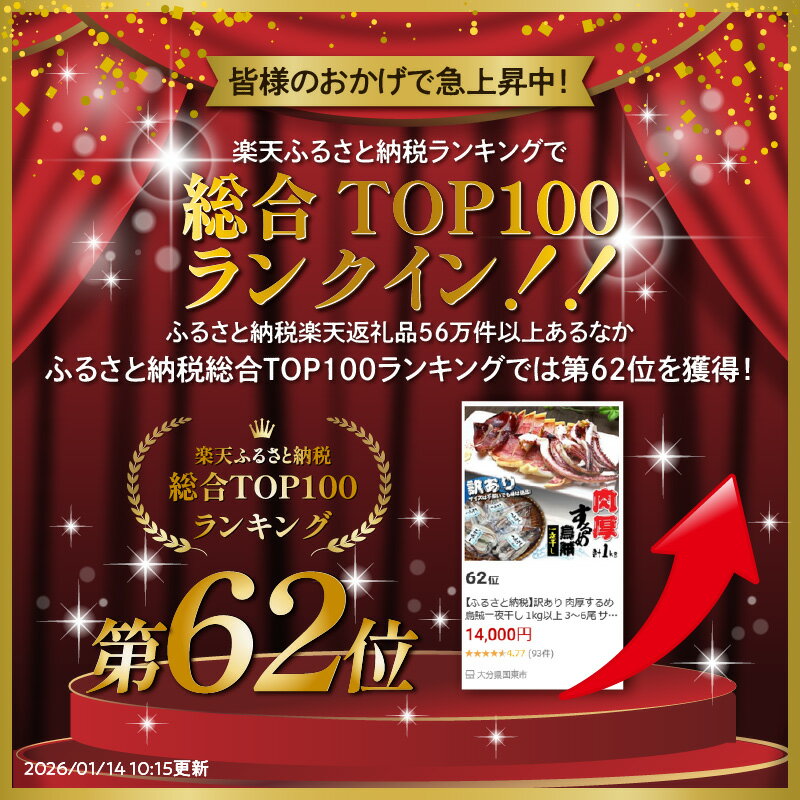 - 【ふるさと納税】訳あり 肉厚するめ烏賊一夜干し 1kg以上 3~6尾 サイズ不揃い 味は絶品 酸化防止剤 着色料 不使用 肉厚 甘みの強い 素材の美味しさ 甘塩 国産 イカ 海鮮 干物 おつまみ おかず ゲソ 耳 コリコリ食感 炙り お取り寄せ グルメ 大分県 国東市 送料無料