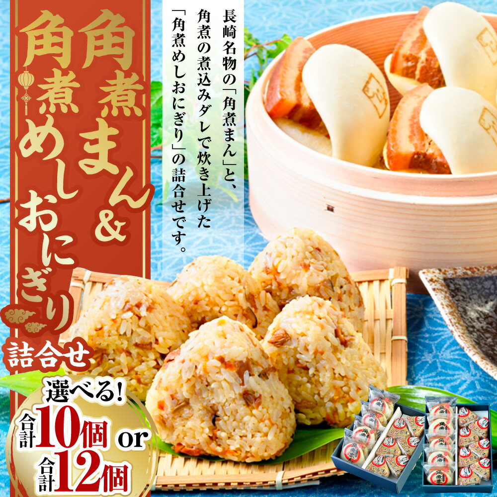 - 【ふるさと納税】【7営業日以内発送】角煮まん・角煮おにぎり詰合せ 選べる内容量 ( 角煮まん4個・角煮めしおにぎり6個 計10個 or 角煮まん5個・角煮めしおにぎり7個 計12個 ) | こじま 肉 お肉 角煮 豚肉 詰め合わせ セット 2種 小分け 個包装 惣菜 おやつ 冷凍 長崎市