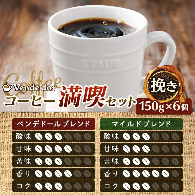- 【ふるさと納税】自家焙煎 珈琲豆 ブレンド コーヒー 満喫セット (挽き 150g×6個) | ベンデドール 珈琲豆 コーヒー豆 挽豆 21000円 ギフト 贈り物 すぐ 届く 発送 すぐ届く 釧路町 釧路超 特産品 br07