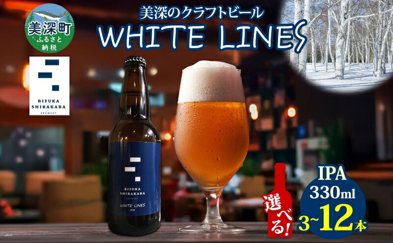 【ふるさと納税】【選べる 入数】 美深のクラフトビール WHITE LINES 3~12本 ビール ホワイトラインズ IPA フルーティー 白樺樹液 アルコール 飲料 瓶ビール 麦芽 ホップ のど越し 苦味 地ビール お酒 酒 国産 北海道 美深町