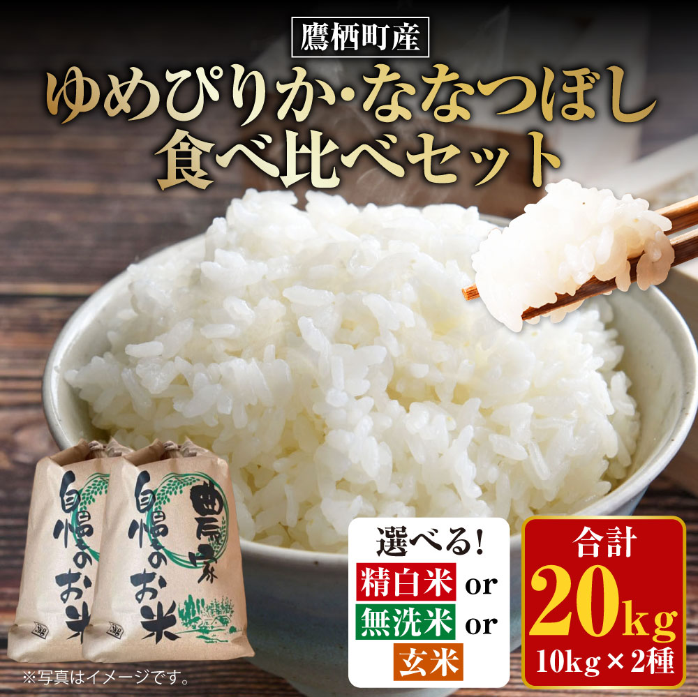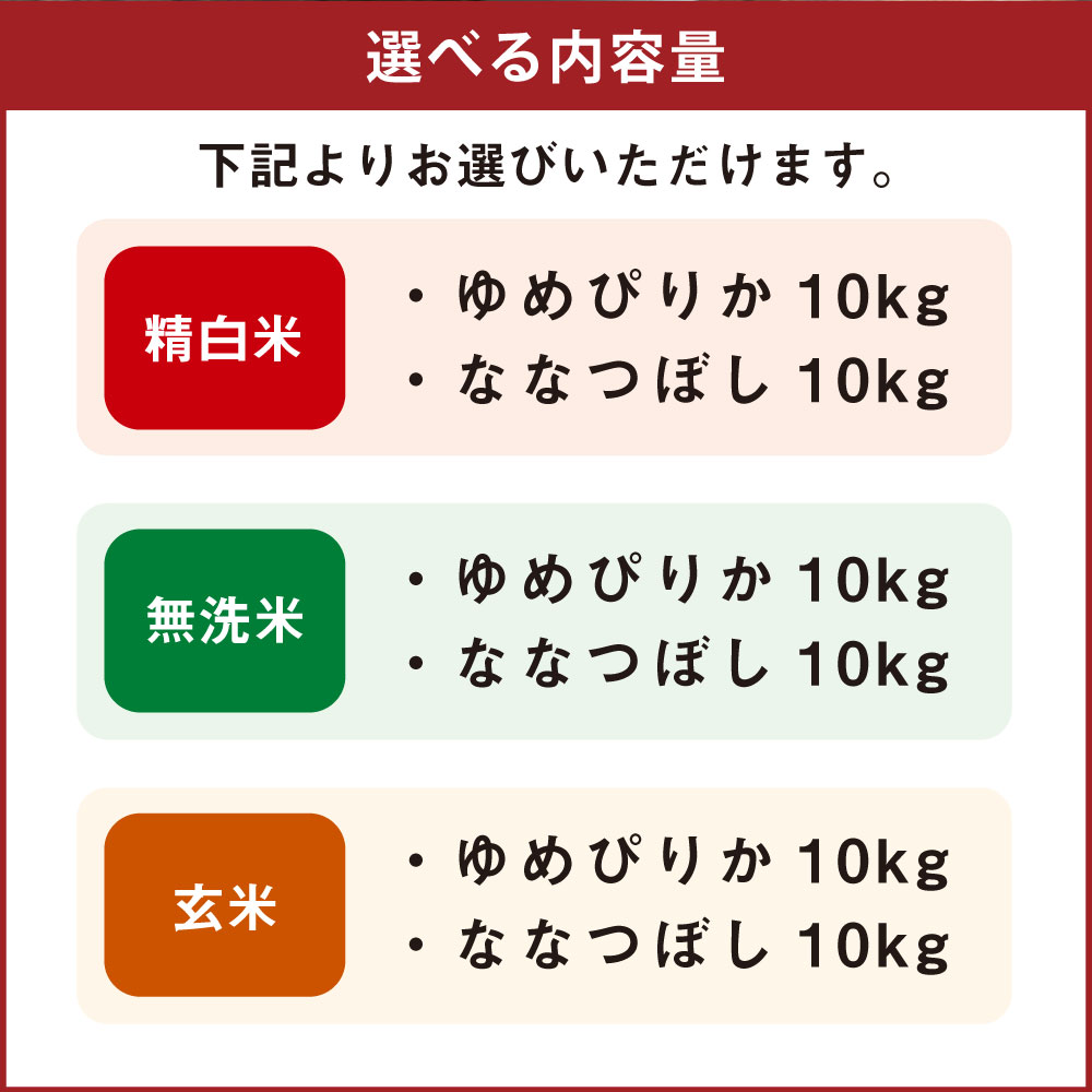 - 【ふるさと納税】【令和7年産】 ゆめぴりか ななつぼし 食べ比べセット 〈選べる〉 精白米 / 無洗米 / 玄米 各10kg 計20kg 北海道 鷹栖町 たかすのおむすび 米 コメ ご飯 精白米 白米 お米