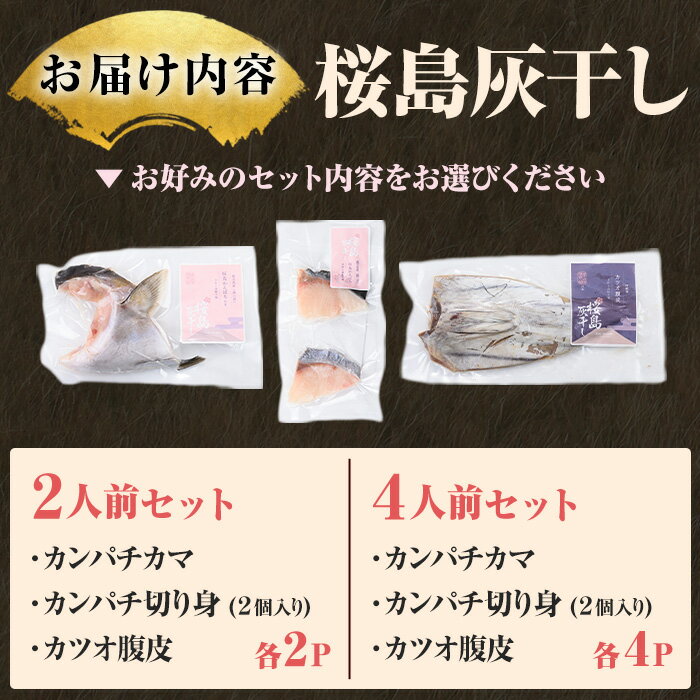 【ふるさと納税】<容量選べる>桜島灰干し鹿児島県産 カツオ・カンパチセット(総計6~12P) 干物 魚 魚介 焼き魚 惣菜 おつまみ おかず 灰干し 冷凍 晩ごはん 朝食 朝ごはん 朝ご飯 和食 定食 カンパチ カツオ 腹皮 カマ 切身 保存料無添加 【マルハニチロ】