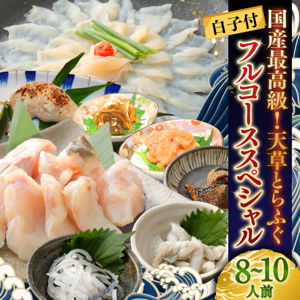 【ふるさと納税】【白子付】大皿使用 国産最高級!天草とらふぐフルコーススペシャル 8~10人前 刺身 白子 皮刺し 切身 アラ 旨辛明太和え 本皮松前漬け ひれ酒用焼きひれ 魚介類 水産物 詰め合わせ セット 冷凍 国産 九州 熊本県産 送料無料 【2025年12月下旬発送開始】