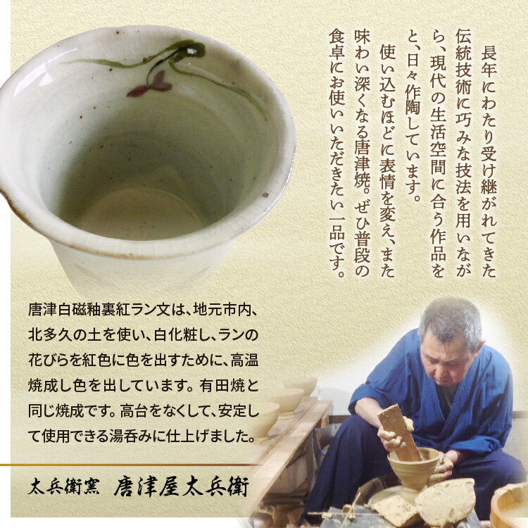 - 【ふるさと納税】【唐津屋 太兵衛窯】唐津 白磁 釉裏紅 ラン文 湯呑 湯のみ 陶器 和食器 焼き物 | 唐津白磁釉裏紅ラン文湯呑 日本製 伝統工芸 ギフト 贈答 _c-122