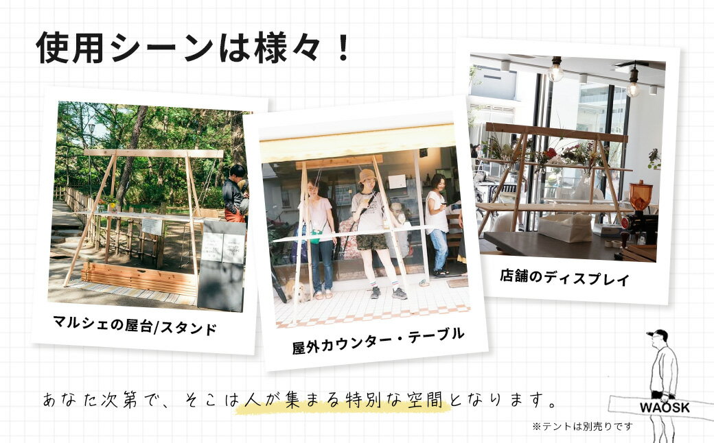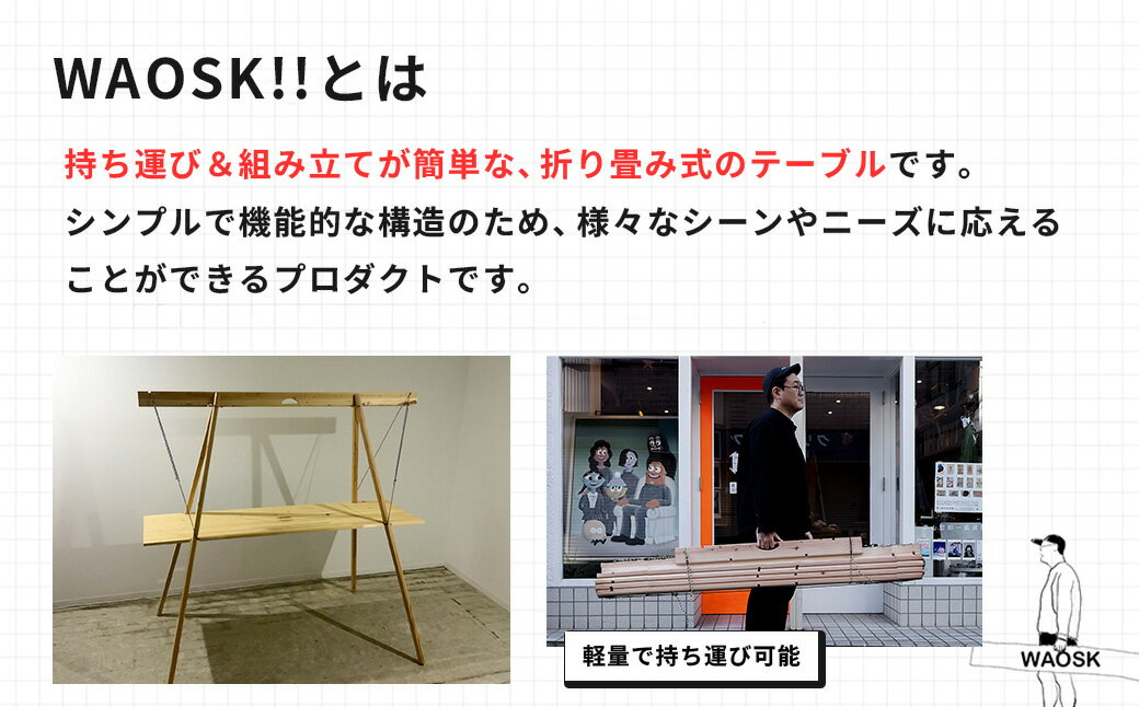 【ふるさと納税】組み立て テーブル WAOSK!!(ワオスク) | 軽量 折り畳み オリジナル デザイン 持ち運び キャンプ アウトドア キャンプギア 屋台 マルシェ 立ち飲み スタンド 展示用 イベント ポップアップストア 木製 手作り ミニマル 簡単 WAO 神奈川 秦野