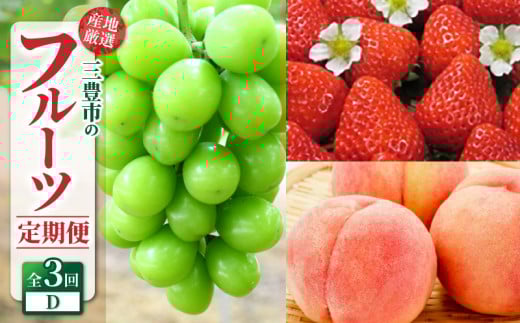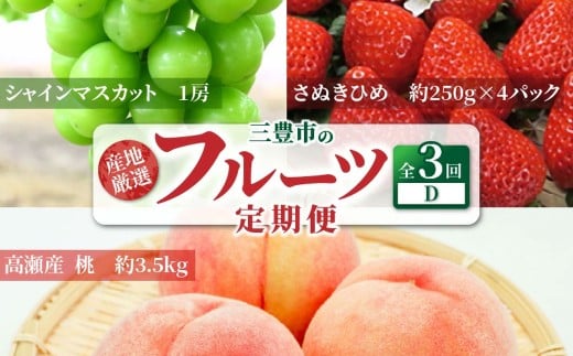 - 定期便 年3回 三豊市 産地厳選 フルーツ定期便D [ 果物定期便 フルーツ定期便 定期配送 産地直送 旬フルーツ 季節の果物 国産 贈答用 ギフト お取り寄せ 香川県 三豊市 苺 さぬきひめいちご 桃 もも シャインマスカット ]