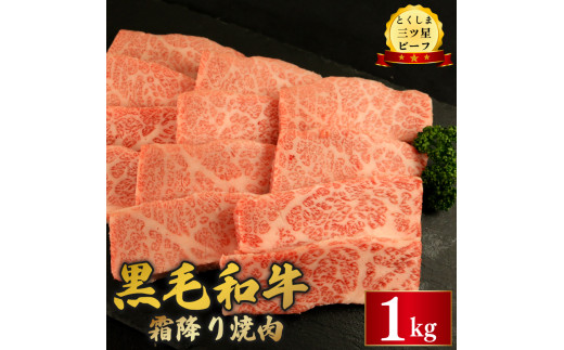 牛肉 黒毛和牛 焼肉用 1kg 霜降り とくしま三つ星ビーフ 冷凍 お祝い 誕生日 記念日 ギフト 贈答 プレゼント お取り寄せ グルメ 送料無料 徳島県 阿波市 肉の藤原