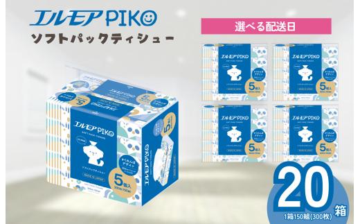 - 【指定日配送】エルモア ピコソフトパックティシュー 20箱 150組(300枚)×5箱×4パック