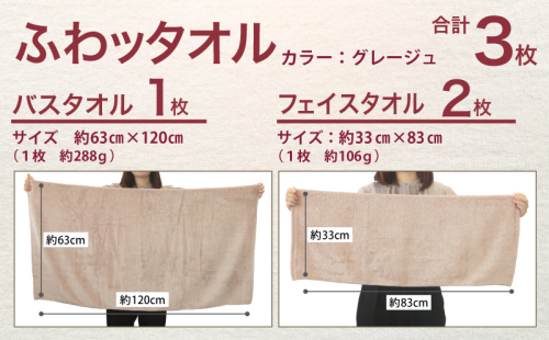 - ふわッタオル バスタオル 1枚&フェイスタオル 2枚セット(グレージュ)【スーパーゼロ SUPER ZERO 泉州こだわりタオル 泉州タオル 国産 吸水 普段使い シンプル 日用品 家族 ファミリー】 015B567