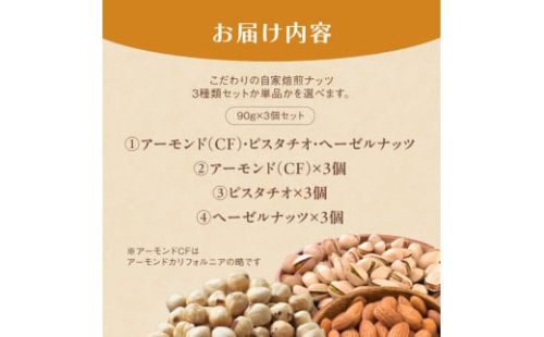 自家焙煎ナッツ 無塩 90g×3個 アーモンド ヘーゼルナッツ ピスタチオ: ナッツセット 無添加 ナッツ 焙煎ナッツ 焙煎アーモンド 焙煎ヘーゼルナッツ 焙煎ピスタチオ ナッツ おつまみ お供 珈琲と お酒と ギフト 熨斗 舞鶴 cafe 321 and TAMA
