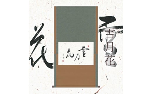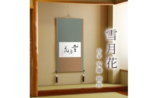 - 掛け軸「雪月花」 安藤徳祥 懐紙横 サイズ:59×110cm 桐箱付 掛け軸 和室 おしゃれ 日本画 表装 床の間