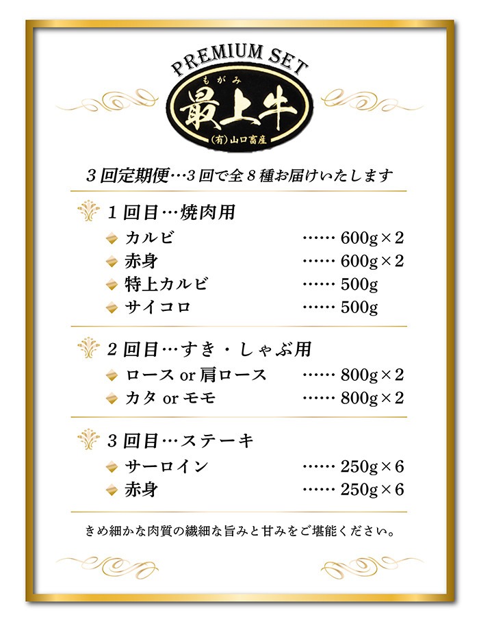 - 【冷凍】【3回配送で全8種】特選最上牛3回定期便