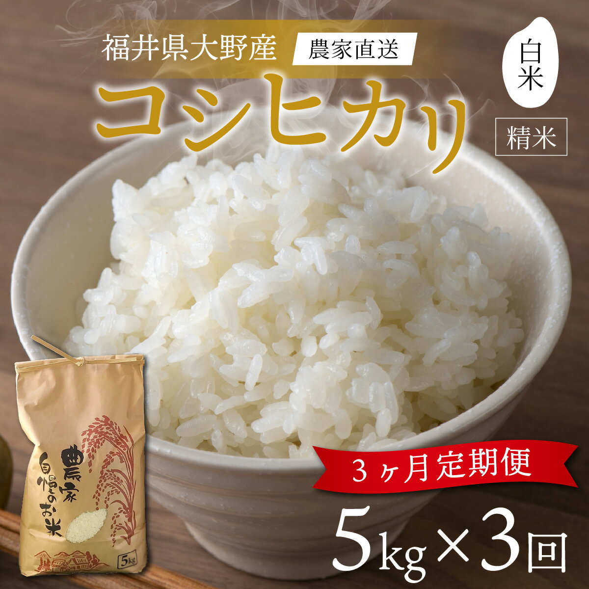 - 【ふるさと納税】【令和7年産】【3ヶ月定期便】福井県大野市産 一等米 コシヒカリ 白米 精米 5kg 農家直送 [B-013001]