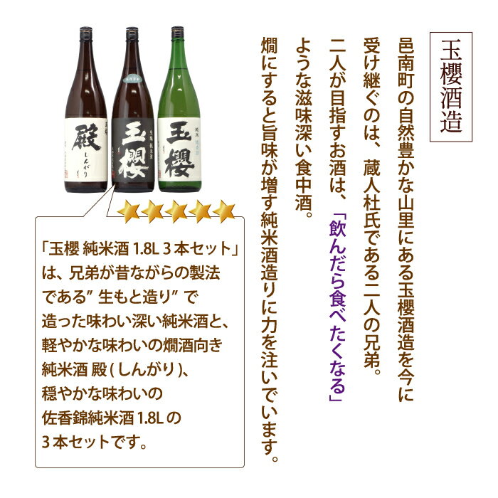 - 【ふるさと納税】玉櫻 純米酒 1.8L 3本セット