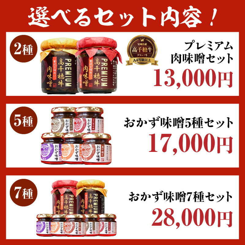 - 【ふるさと納税】【選べる内容量】ご飯がススム おかず味噌セット 味比べ 食べ比べ ふりかけ ごはんのお供 食べる味噌 しそ しいたけ 牛肉 肉 おかず おつまみ お弁当 贈り物 ギフト 化粧箱 宮崎県 高千穂町