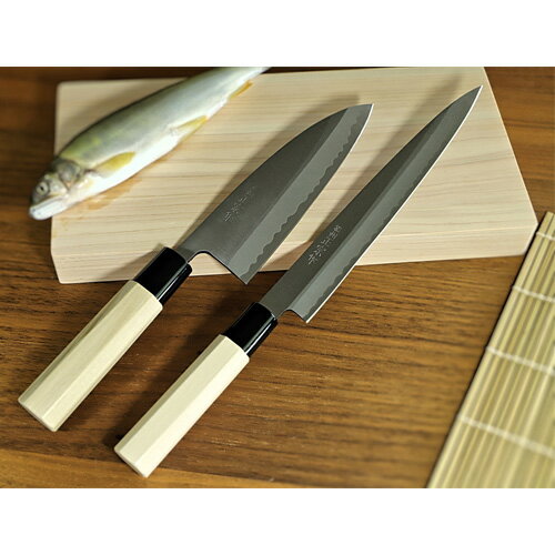 - 【ふるさと納税】濃州正宗作 鋼和包丁2点セット(出刃包丁+刺身包丁)(専用砥石+研ぎ方DVD付き)【飛騨美濃すぐれもの認定】 〜包丁セット 天然木ハンドル 佐竹産業 おしゃれ キッチン用品 調理器具 よく切れる 日本製 引越し 新生活 贈り物〜 関市 H30-49