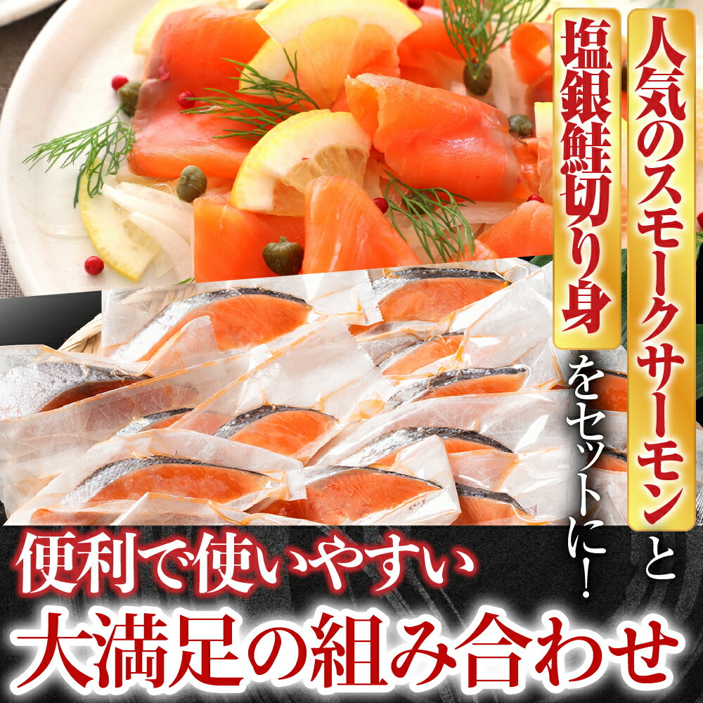 - 【ふるさと納税】 スモークサーモン 2 ~ 4P ( 計 500g ) &塩銀鮭切り身 1 切 ( 約 70g ) × 20P 鮭 さけ サケ しゃけ シャケ 魚 さかな サカナ お取り寄せ グルメ 海鮮 銀鮭 銀ザケ 銀ざけ 燻製 くんせい 北海道 根室市 B-09089
