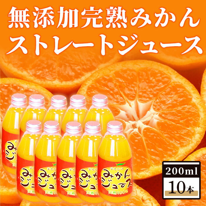 【ふるさと納税】無添加 完熟みかん ストレートジュース 200ml×10本 みかんジュース 温州みかん みかん 蜜柑 ミカン ジュース 飲料 美味しい 安心安全 贅沢 おすすめ 大自然 完熟 人気 リピーター 子供 喜ぶ100% 瓶 九州 佐賀県 鹿島市 送料無料 B-122