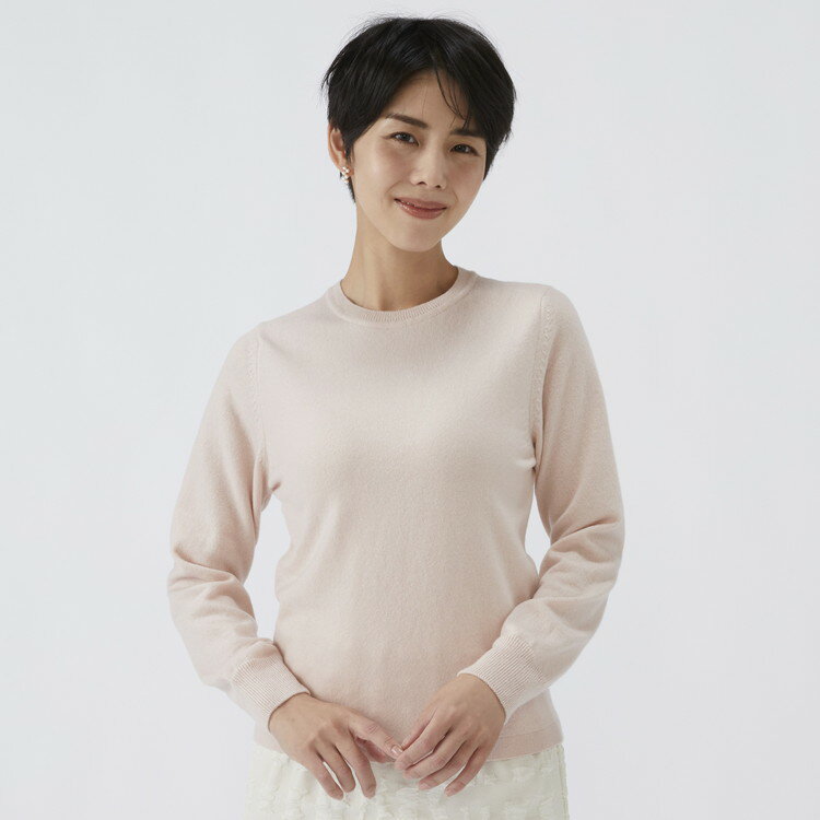 - 【ふるさと納税】【選べるサイズ】日本製 カシミヤ100% レディース クルーネック ピンクベージュ