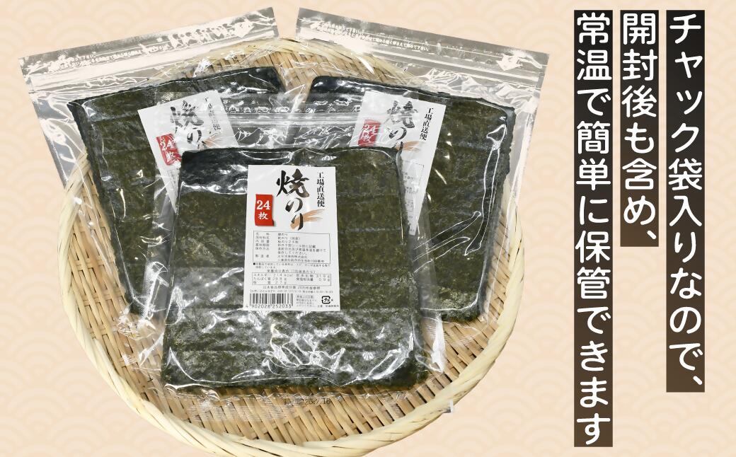 - 【ふるさと納税】工場直送便 焼海苔セット(全型24枚×3袋)【太平洋海苔】