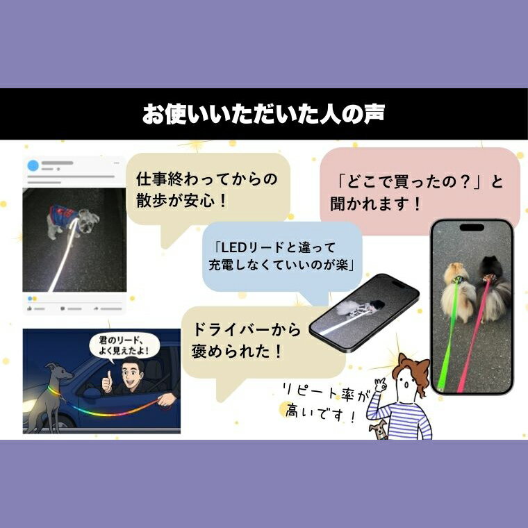 【ふるさと納税】『すみれパープル』犬用光るリード/特注高輝度反射材使用【小型犬用10キロまで】|散歩 愛犬 夜散歩 阿見町 茨城県(40-32)