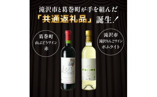 滝沢市 × 葛巻町 共通返礼品 滝沢りんごワイン ポムライト + 山ぶどうワイン・赤 各 720ml セット 【岩手くずまきワイン】 ワイン 赤ワイン 白ワイン 飲み比べ お酒 酒 アルコール りんご 林檎 リンゴ アップル ブドウ ぶどう 葡萄 グレープ 山葡萄 ギフト プレゼント 人気 オススメ おすすめ