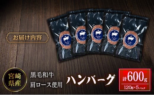 - 宮崎県産黒毛和牛肩ロース使用 ハンバーグ 計600g(1個120g×5パック)冷凍 小分け 国産【A342】