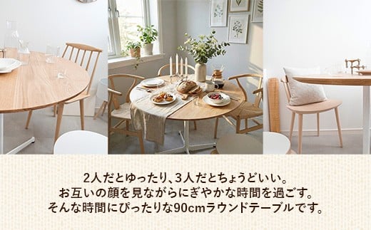 直径90cmオーク無垢ラウンドテーブル 脚カラーブラック/シルバー【木製 テーブル オーク 円形 一本脚 無垢材 温かみ 国産 シンプル おしゃれ 受注生産 家具 インテリア 島根県 安来市】【270-AW-07-4】