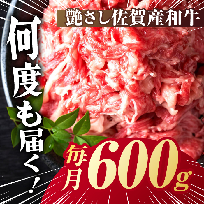 - 【全12回定期便】【不揃い訳あり・部位おまかせ】佐賀産和牛 切り落とし 肩orバラ 計7.2kg (600g×12回) 吉野ヶ里町 [FDB029]