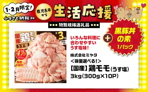 【 生活応援 +黒豚丼の素1P 】 期間限定 【国産】鶏モモ(うす塩)3kg K025-012_05_cp