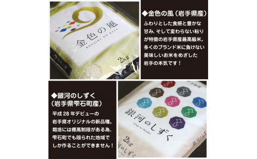 五ツ星お米マイスター 厳選 食べ比べ 金銀セット 精米 2kg 計 3袋 【諏訪商店】 米 こめ コメ 白米 ご飯 ごはん ライス グルメ 食料 五つ星 5つ星 5ツ星 お米 マイスター 岩手県産 金色の風 雫石町産 銀河のしずく 6キロ 国産 岩手県産 産地直送 プレゼント お取り寄せ 仕送り 人気 おすすめ